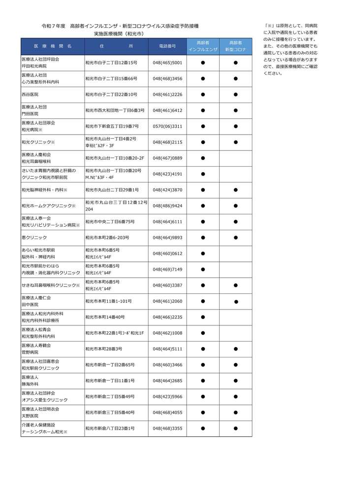 (1)「和光市内」及び「朝霞地区3市(朝霞・新座・志木)」の指定医療機関で接種する場合