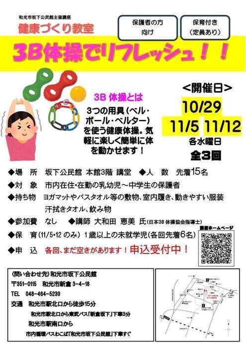 健康づくり教室(保育付き・全3回)「3B体操でリフレッシュ!!」