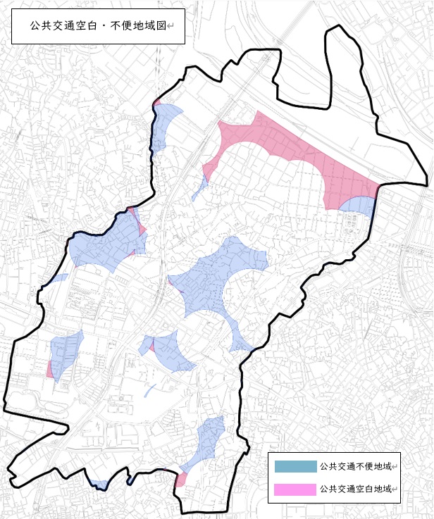 バス停300m圏内において、1日の運行本数が上下合わせて24本未満の地域