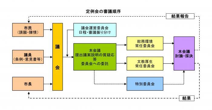 市議会には、定例会と臨時会があり、ここで市及び議会の意思を決定します。
