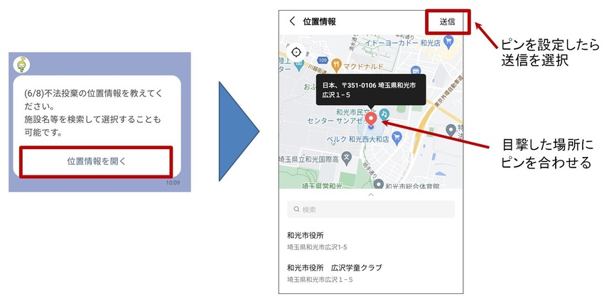和光市公式LINEの通報(不法投棄)の機能の使い方についてご案内いたします。